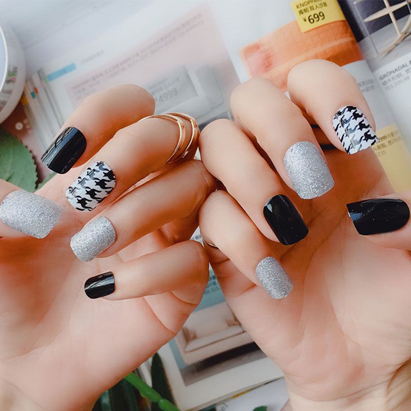 3d Nail Art Finished Fake Nail Glitter Wedding Black Pink Shine