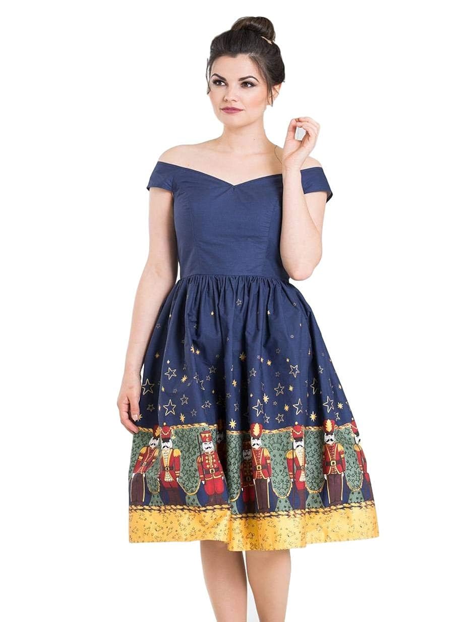 Hell Bunny Nutcracker Vintage Retro 1950 S Christmas Party Dress Navy Blue