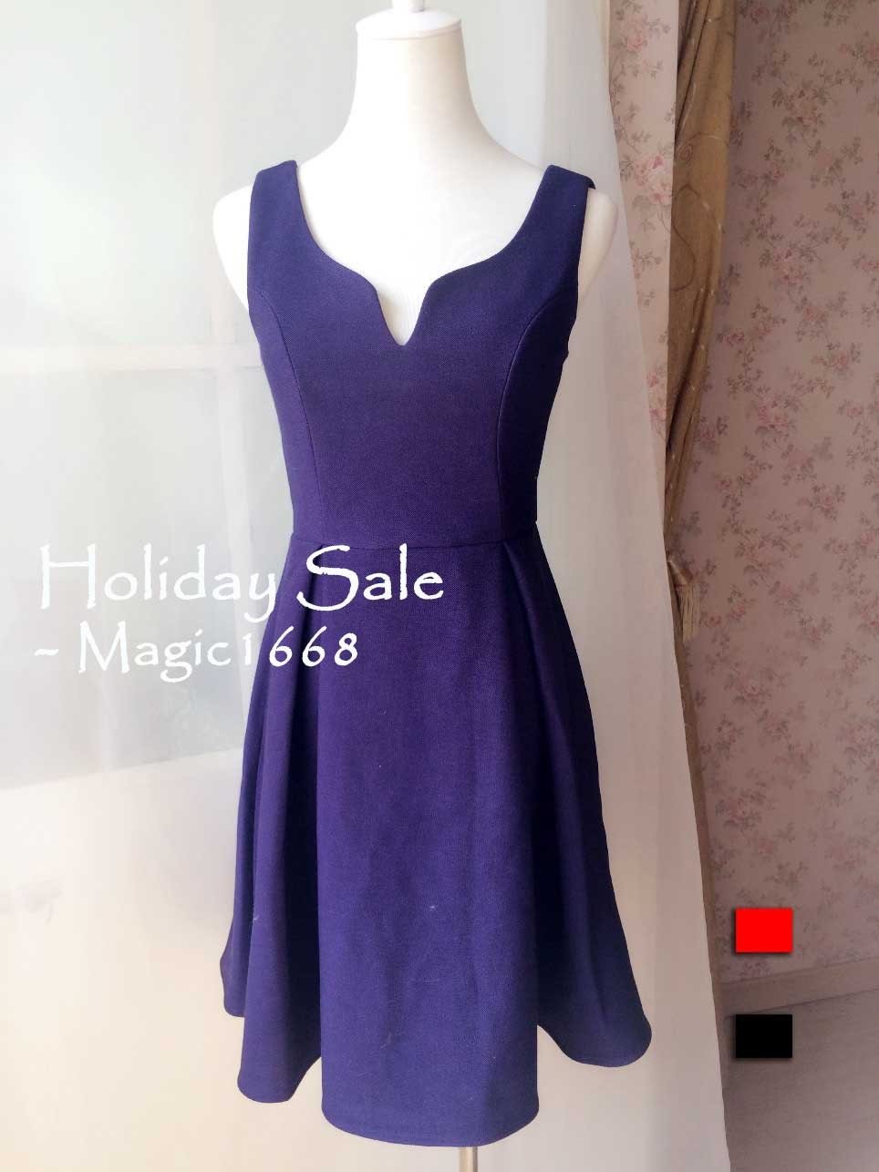 Holiday Outfit Navy Blue Fit Flare Dress Pinksole