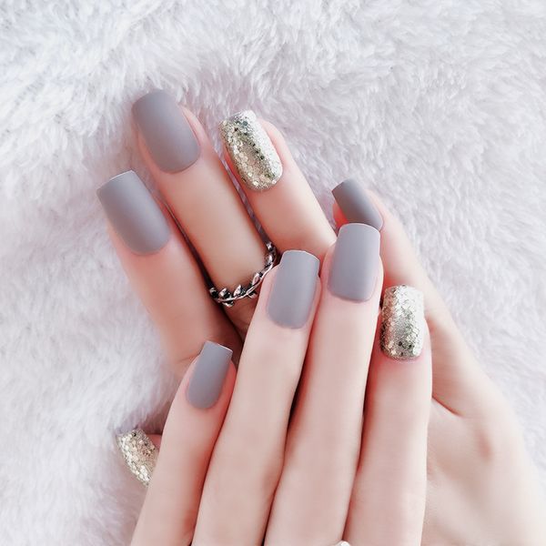 Girls Simple Fashion Gray Color Artificial Nail Full Cover Short