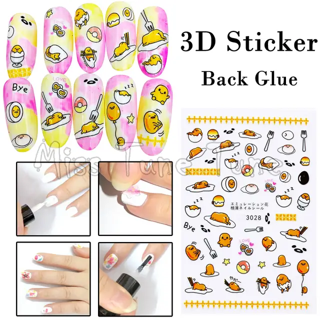 Cute Funny Gudetama 3d Nail Art Sticker Nail Tips Decal Back