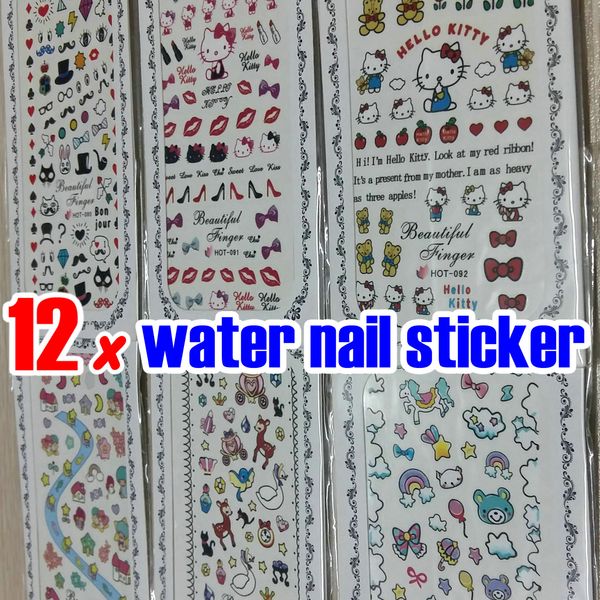 12x Nail Art Water Transfer Sticker Decal Decals Cute Anime Hello Kt Cat Decoration Strip Wrap Wraps For Natural False Nails Tips 2018 New Nail