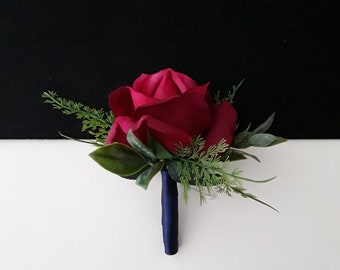 Deep Red Rose Boutonniere Prom Corsage Wedding Guest Buttonhole