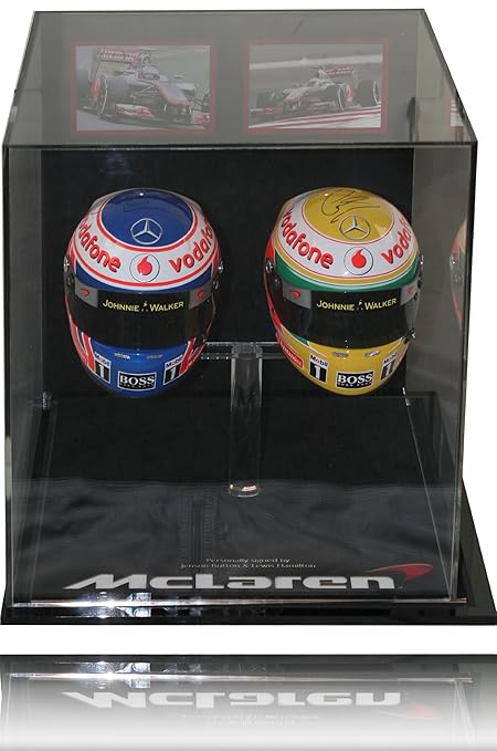 Jenson Button Lewis Hamilton Signed Mini Helmets Display